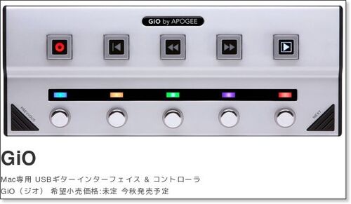 Apogee GiO Mac専用 USBギターインターフェイス & コントローラ - 株式会社エレクトリ via kwout ギター弾きでMac Userなおいらには朗報!? Logic、ガレバン専用なのがちょいとネックか…が、自分はガレバンぐらいしか手元にないのであった。 うーん、ギター…